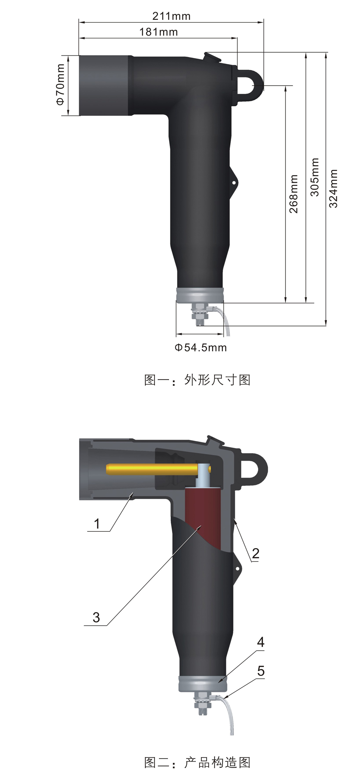 肘型避雷器本體