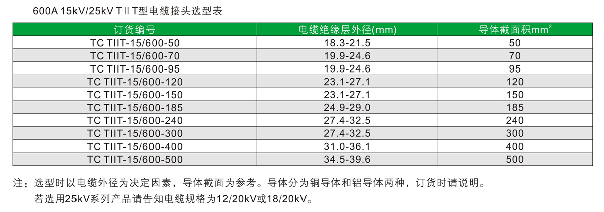 15kV/25kV TT型電纜接頭選用EPDM(三元乙丙橡膠)制成,全絕緣,全密封。用于高壓地下電纜連接設(shè)備,如箱變、環(huán)網(wǎng)柜及電纜分接箱等,其額定電流為600A,可連接相關(guān)規(guī)格的電纜,在其測試點上安裝帶點指示器,能快速準(zhǔn)確的查找故障點。T型電纜接頭與轉(zhuǎn)換頭配合轉(zhuǎn)變成TT型電纜接頭。TIT有600-200轉(zhuǎn)換接口,可接200A肘型電纜接頭或肘型避雷器等。